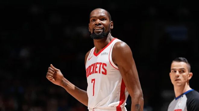 火箭隊(duì)這邊,申京17投12中,轟下28分6籃板2助攻2搶斷2蓋帽;杜蘭特貢獻(xiàn)24分10籃板8助攻;謝潑德13中4得到15分2籃板4助攻3失誤,連續(xù)第四場(chǎng)至少命中三記三分球。