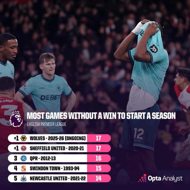 據(jù)統(tǒng)計(jì),狼隊(duì)追平了謝菲爾德聯(lián)在2020-21賽季創(chuàng)下的英超開局最長不勝紀(jì)錄。