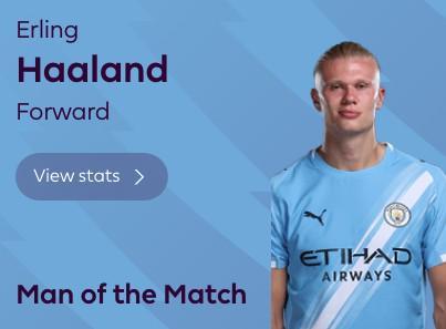 梅開二度,哈蘭德當選曼城vs西漢姆聯(lián)全場最佳球員