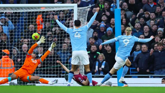 1分鐘后,謝爾基前場搶斷后狹縫中傳球,哈蘭德順勢助攻,賴因德斯一蹴而就,曼城取得兩球的領(lǐng)先。