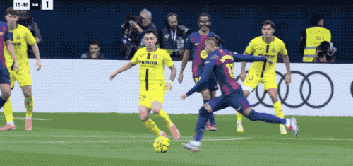 第32分鐘,德容的傳中被門將擋了出來,亞馬爾禁區(qū)外原地起腳,皮球稍稍高出。
