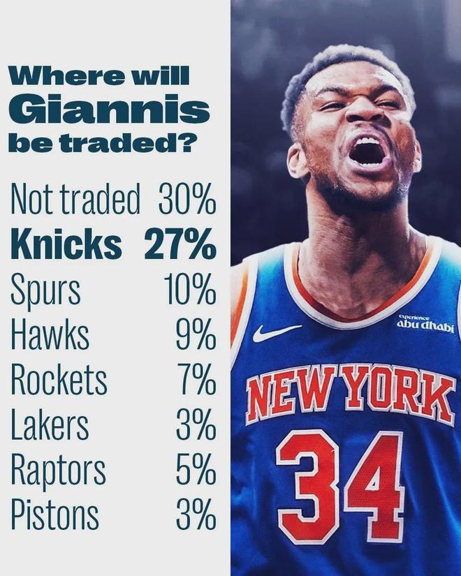 只是目前還不知道,字母哥心儀球隊的名單。字母哥下家賠率排行榜:留在雄鹿(30%)排名第1、尼克斯(27%)第2、馬刺(10%)第3。4-8位分別是:老鷹、火箭、湖人、猛龍和活塞。最新消息稱,雄鹿對唐斯毫無興趣。